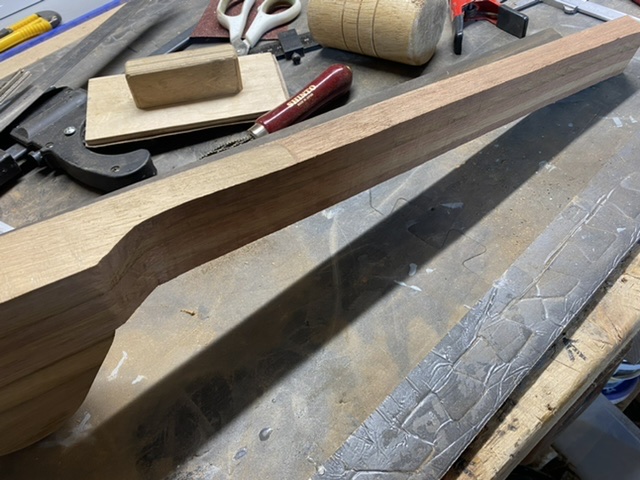 Vorgestern hab ich das shaping des Hals/Korpus Übergang begonnen (sieht man leider schlecht im Foto):